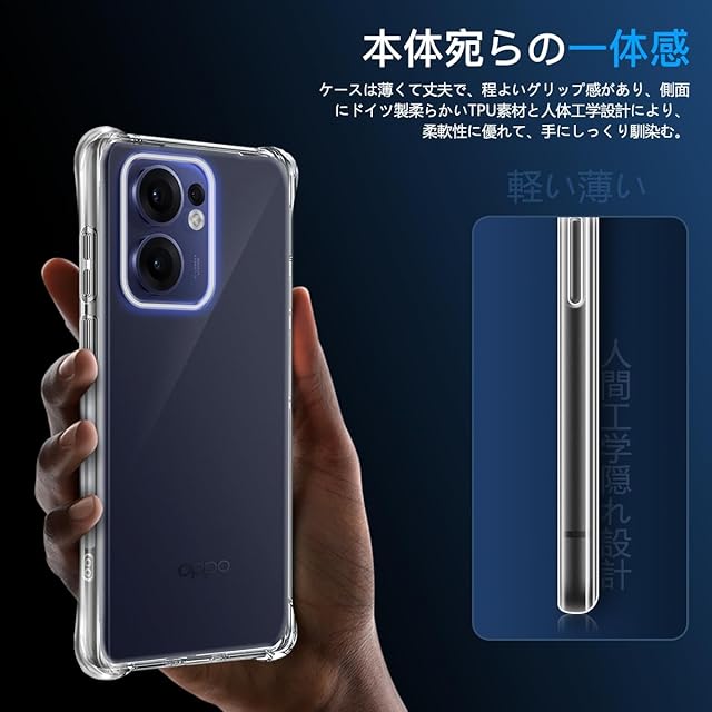 【透明感抜群·黄変防止】 環境に優しく、無毒無味の高品質素材採用して抗酸化処理が施されており、何年も黄変することはありません。また、超精度の透光分子を持ち、背面の光透過率は99%に達した、OPPO Reno13A 本来の美しいデザインとカラーをそのままに楽しめます。