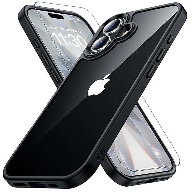 gogorelax for iPhone17 用 ケース ブラック 耐衝撃 ガラスフィルム付き アイフォン17 用 ケース 米軍MIL規格 耐久性 黄ばみ防止 アイホン17 用 スマホケース ワイヤレス充電対応 SGS認証 あいほん17対応 あいふぉん17 用 カバー 6.3インチ 透明 ストラップホール付き