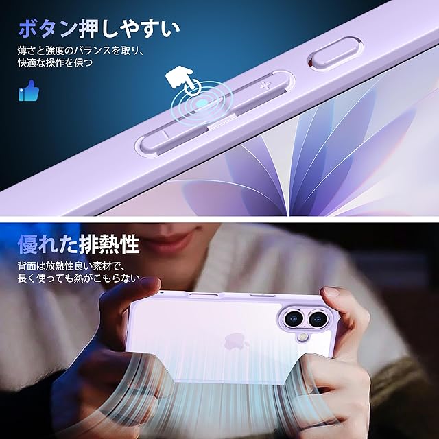 【絶妙バランス・快適操作】クリアケースの保護性能を保ちながら、スマートさを損なわないよう、薄さと強度のバランスを取り、手にフィットする程よい厚みで、快適さが保ち、最適な設計で作り出す。アイフォン17のボタンやレンズなどの細部に基づいて設計された専用スマホケースは、ぴったりとフィットしています。ボタン、カメラ位置も含めて寸法はバッチリでスマホケースをつけていないかのように快適に使用できます。