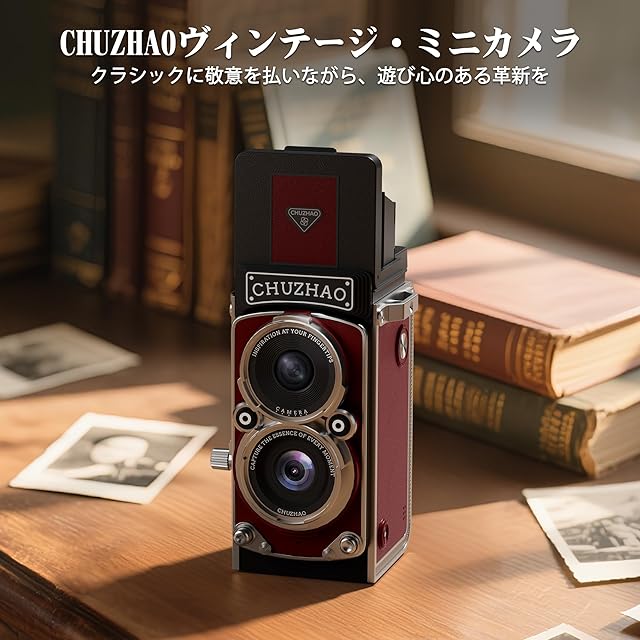 商品名:CHUZHAO ヴィンテージミニデジタルカメラ、ポータブルTLRスタイルのレトロでコンパクトな小型ポケットサイズ1080P ビデオカメラ、12MPオートフォーカス機能搭載で、初心者、ティーンエイジャー、大人向け、ネックストラップ、Type-C充電ケーブル、日本語取扱説明書付き (レッド)