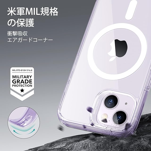 商品名:【米軍MIL規格・Magsafe対応】ESR iPhone 14 ケース iPhone 13 ケース 傷に強い背面 ワイヤレス充電 ストラップホール付き iPhone 14ケース iPhone 13ケース いphone14 ケース iphone13 ケース 用 HaloLock搭載 ハイブリッド磁気ケース 6.1インチ ライトパープル Classic Series