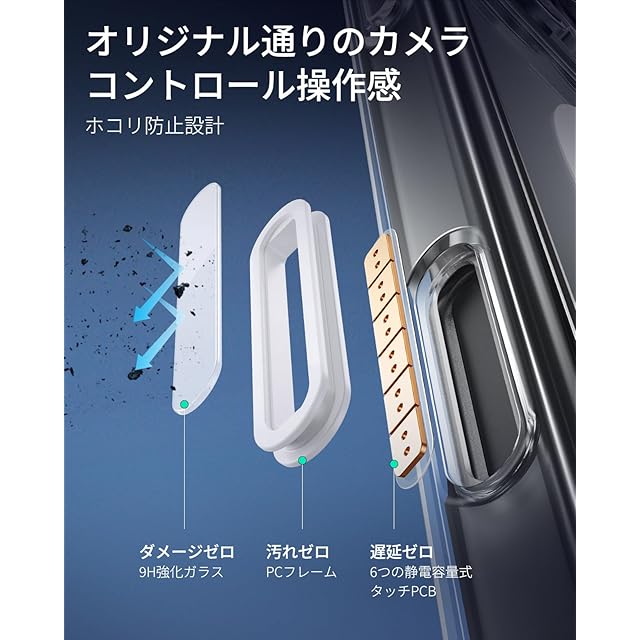 【プロのように滑らか!スライド式カメラコントロール】 iPhone 16 Pro Max ケースの革新的なカメラコントロールボタンを専用カバーで守りながら、指先に伝わるプロ級の操作感をそのまま体感できます。スライド時の滑らかな動きから押圧時の確かな反発感まで、本体と遜色ない精密なタッチレスポンスを実現します。ボタン周辺の隙間を完全に封鎖する設計で、ほこり侵入を徹底シャットアウトします。精密センサーを埃のストレスから守り、シャッターチャンスを逃さない快適操作を長く支えます