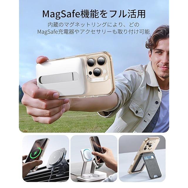 【ズレない・外れない!最強マグネット〈1,500gの保持力〉】 業界トップクラスの強力磁力(1,500gの保持力)を内蔵した いPhone16Pro ケースです!MagSafeワイヤレス充電器やアクセサリーが瞬時に「ピタッ」と吸着するため、満員電車や急いでいる時でも位置調整の手間が不要です。充電中のずれ落ちやアクセサリーの外れが心配ない設計で、移動中やアウトドアでの利便性が格段に向上します