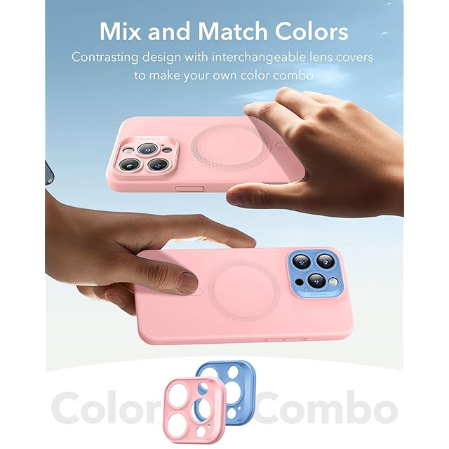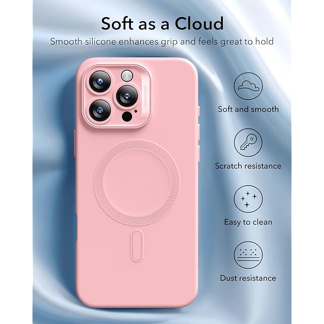 ESR iPhone 16 Pro ケース MagSafe付き マグネット充電対応 滑らか・スリムなシリコンケース 耐衝撃 フルスクリーン&カメラ保護 傷防止 ソフトマイクロファイバーライニング Cloudシリーズ ピンク