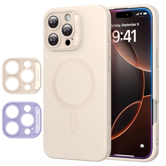 ESR iPhone 16 Pro ケース MagSafe付き マグネット充電対応 滑らか・スリムなシリコンケース 耐衝撃 フルスクリーン&カメラ保護 傷防止 ソフトマイクロファイバーライニング Cloudシリーズ ライトタン