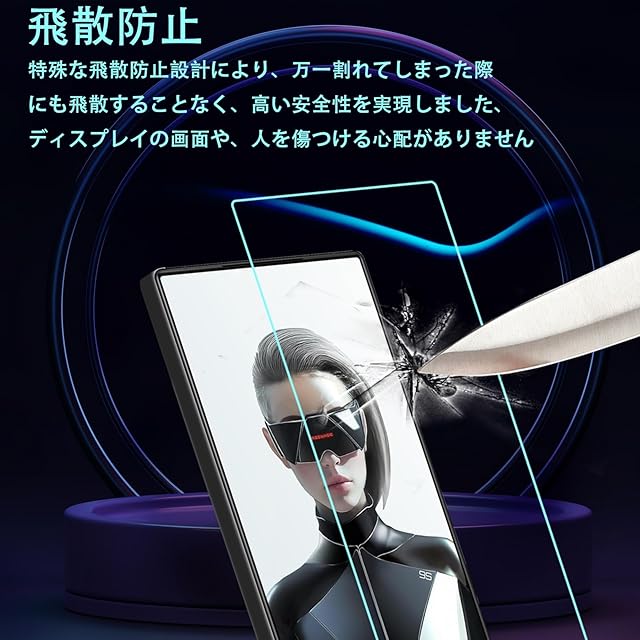 【対応機種】FOR REDMAGIC 9 Pro / REDMAGIC 9S Pro 用のフィルム 強化ガラス 液晶保護フィルム。注: 同じ機種です。メーカーが提供するカメラの穴の開口部は異なる開口部がある場合があります、ご理解ください。モデルによってサイズが異なりますので、モデルを確認してご購入ください。<br> 【表面硬度9H】カッターなどの鋭利なものを当たってもキズが付きにくくて高い強度を持ち表面硬度9Hが特徴です。ハードコーティング技術は、衝撃を最小限に抑えて画面の破損を抑え、すり傷防止や指紋防止もしっかりとスクリーンを保護します。本体の端を完全に覆い、液晶画面を保護します。エッジの衝撃が軽減され、ガラス膜の耐久性も向上しました。万が一の破損時も飛散防止加工によって破片はフィルムに張り付いた状態で破片がほとんど飛び散らない安全性の高いガラスになっています。<br> 【0.33mmの極薄ガラス採用&2.5D ラウンドエッジ仕様】透過率は約99%に達し高い透明度は、元の画面の明るさ、アンチグレア、高感度タッチ、鮮明な画像、立体感を強調し、視覚効果を向上させ。 画質も傷つきにくいです。見た目・触り心地ともに何も付けてない状態と殆ど変わりません。厚さ0.33mmの超極薄で、何も貼っていないような感じで液晶画面の美しさをお楽しみいただけます。指紋ロック解除技術をサポートし、迅速なアプリケーション起動、スムーズなゲーム体験とビデオ再生をします。気泡が入りにくいのできれいに貼り付けられる。2.5D ラウンドエッジ加工など、使いやすさにもこだわりました。 飛散防止加工、粉々に散らばらないので、ディスプレイの画面や、人を傷つける心配がありません<br> 【汚れ防止&飛散防止】指紋防止加工、耐オイルコーティングで表面がいつもきれい、油分、指紋や汚れが付きにくいです。また付着した水滴や汗、など簡単に拭き取れるだけでなく、指の滑り感も優れています。とても滑らかで、触り心地はとても良いのです。特殊な飛散防止設計により、万一割れてしまった際にも飛散することなく、高い安全性を実現しました、ディスプレイの画面や、人を傷つける心配がありません<br> 【貼り付けは簡単です】気泡が入りにくく、初心者でも完璧に貼り付けられます、角を合わせてポンと中心を押すだけで貼りつけ完了、自己吸着機能!気泡が発生しにくいので、綺麗に貼り付けられます。 撥油コーティング加工されているため、耐油性に優れ、指紋付きにくく、付着した汚れも簡単に拭き取れます。液晶画面の発色を損なうことはなく、精確なタッチ感、スライドしても引っかかり感がなく、さらさら手さわり、裸さながらの質感を実現します。画面上の操作も違和感なくスムーズに行えます。<br>