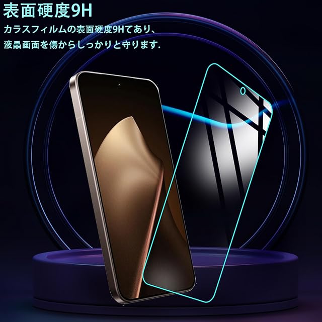 【対応機種】FOR Xiaomi 15T Pro 2025 用のフィルム 強化ガラス 液晶保護フィルム。注: 同じ機種です。メーカーが提供するカメラの穴の開口部は異なる開口部がある場合があります、ご理解ください。モデルによってサイズが異なりますので、モデルを確認してご購入ください。<br> 【表面硬度9H】カッターなどの鋭利なものを当たってもキズが付きにくくて高い強度を持ち表面硬度9Hが特徴です。ハードコーティング技術は、衝撃を最小限に抑えて画面の破損を抑え、すり傷防止や指紋防止もしっかりとスクリーンを保護します。本体の端を完全に覆い、液晶画面を保護します。エッジの衝撃が軽減され、ガラス膜の耐久性も向上しました。万が一の破損時も飛散防止加工によって破片はフィルムに張り付いた状態で破片がほとんど飛び散らない安全性の高いガラスになっています。<br> 【0.33mmの極薄ガラス採用&2.5D ラウンドエッジ仕様】透過率は約99%に達し高い透明度は、元の画面の明るさ、アンチグレア、高感度タッチ、鮮明な画像、立体感を強調し、視覚効果を向上させ。 画質も傷つきにくいです。見た目・触り心地ともに何も付けてない状態と殆ど変わりません。厚さ0.33mmの超極薄で、何も貼っていないような感じで液晶画面の美しさをお楽しみいただけます。指紋ロック解除技術をサポートし、迅速なアプリケーション起動、スムーズなゲーム体験とビデオ再生をします。気泡が入りにくいのできれいに貼り付けられる。2.5D ラウンドエッジ加工など、使いやすさにもこだわりました。 飛散防止加工、粉々に散らばらないので、ディスプレイの画面や、人を傷つける心配がありません<br> 【汚れ防止&飛散防止】指紋防止加工、耐オイルコーティングで表面がいつもきれい、油分、指紋や汚れが付きにくいです。また付着した水滴や汗、など簡単に拭き取れるだけでなく、指の滑り感も優れています。とても滑らかで、触り心地はとても良いのです。特殊な飛散防止設計により、万一割れてしまった際にも飛散することなく、高い安全性を実現しました、ディスプレイの画面や、人を傷つける心配がありません<br> 【貼り付けは簡単です】気泡が入りにくく、初心者でも完璧に貼り付けられます、角を合わせてポンと中心を押すだけで貼りつけ完了、自己吸着機能!気泡が発生しにくいので、綺麗に貼り付けられます。 撥油コーティング加工されているため、耐油性に優れ、指紋付きにくく、付着した汚れも簡単に拭き取れます。液晶画面の発色を損なうことはなく、精確なタッチ感、スライドしても引っかかり感がなく、さらさら手さわり、裸さながらの質感を実現します。画面上の操作も違和感なくスムーズに行えます。<br>