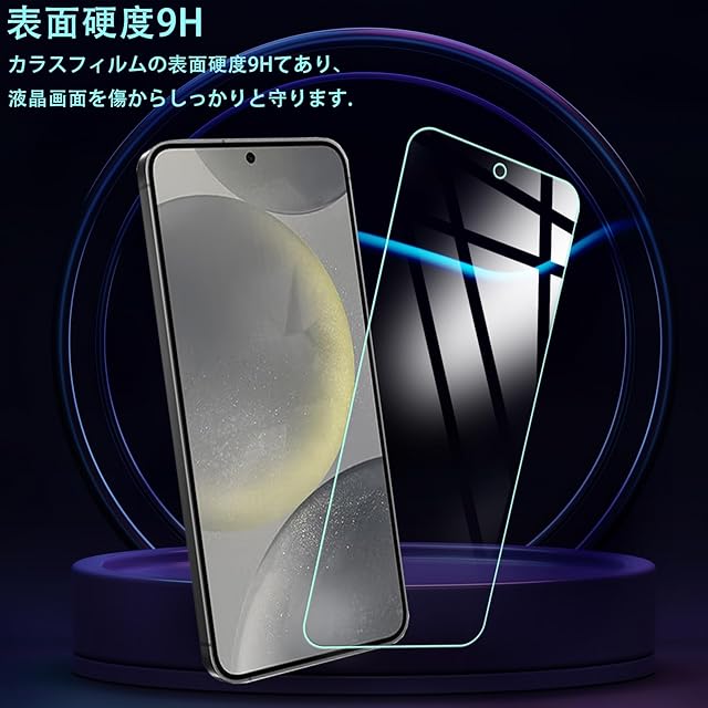 【対応機種】FOR Galaxy S25 plus 5G 用のフィルム 強化ガラス 液晶保護フィルム。注: 同じ機種です。メーカーが提供するカメラの穴の開口部は異なる開口部がある場合があります、ご理解ください。モデルによってサイズが異なりますので、モデルを確認してご購入ください。<br> 【表面硬度9H】カッターなどの鋭利なものを当たってもキズが付きにくくて高い強度を持ち表面硬度9Hが特徴です。ハードコーティング技術は、衝撃を最小限に抑えて画面の破損を抑え、すり傷防止や指紋防止もしっかりとスクリーンを保護します。本体の端を完全に覆い、液晶画面を保護します。エッジの衝撃が軽減され、ガラス膜の耐久性も向上しました。万が一の破損時も飛散防止加工によって破片はフィルムに張り付いた状態で破片がほとんど飛び散らない安全性の高いガラスになっています。<br> 【0.33mmの極薄ガラス採用&2.5D ラウンドエッジ仕様】透過率は約99%に達し高い透明度は、元の画面の明るさ、アンチグレア、高感度タッチ、鮮明な画像、立体感を強調し、視覚効果を向上させ。 画質も傷つきにくいです。見た目・触り心地ともに何も付けてない状態と殆ど変わりません。厚さ0.33mmの超極薄で、何も貼っていないような感じで液晶画面の美しさをお楽しみいただけます。指紋ロック解除技術をサポートし、迅速なアプリケーション起動、スムーズなゲーム体験とビデオ再生をします。気泡が入りにくいのできれいに貼り付けられる。2.5D ラウンドエッジ加工など、使いやすさにもこだわりました。 飛散防止加工、粉々に散らばらないので、ディスプレイの画面や、人を傷つける心配がありません<br> 【汚れ防止&飛散防止】指紋防止加工、耐オイルコーティングで表面がいつもきれい、油分、指紋や汚れが付きにくいです。また付着した水滴や汗、化粧品など簡単に拭き取れるだけでなく、指の滑り感も優れています。とても滑らかで、触り心地はとても良いのです。特殊な飛散防止設計により、万一割れてしまった際にも飛散することなく、高い安全性を実現しました、ディスプレイの画面や、人を傷つける心配がありません<br> 【貼り付けは簡単です】気泡が入りにくく、初心者でも完璧に貼り付けられます、角を合わせてポンと中心を押すだけで貼りつけ完了、自己吸着機能!気泡が発生しにくいので、綺麗に貼り
