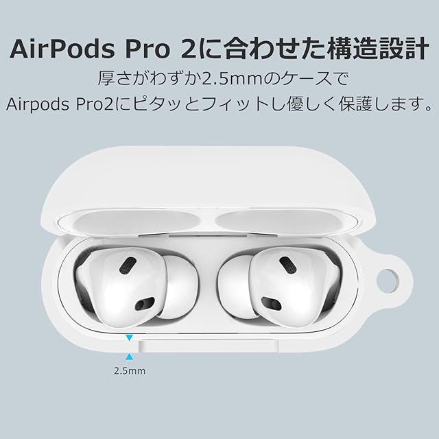 商品名:ZHZUCHLE for AirPods Pro 2ケース カバー シリコン製 全面保護 落下防止 おしゃれ キズ防止 耐衝撃 装着充電可能 軽量小型 カラビナ付き AirPods Pro case エアポッツプロ2ケースカバー(ホワイト)