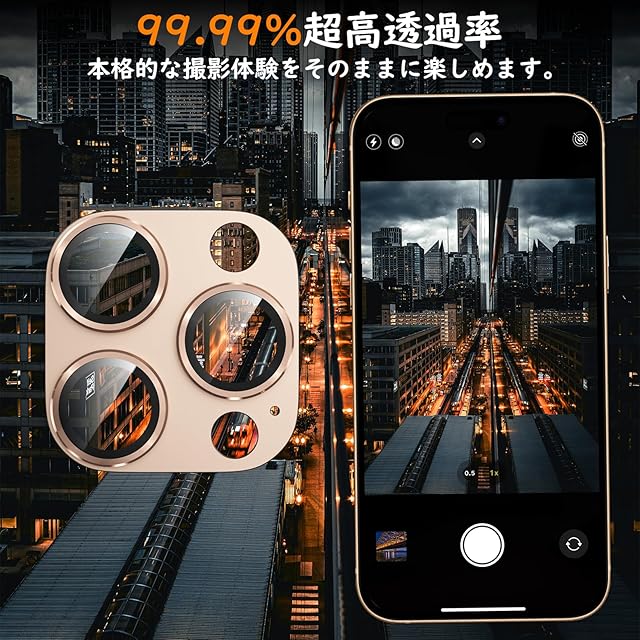 商品名:カメラフイルム iPhone16 Pro/16 Pro Max用 カメラ保護 全面保護 9H強化ガラス アルミ合金 アイフォン16 Pro/16 Pro Max レンズカバー 耐衝撃 露出オーバー防止 黒縁取り 超高透過率 いphone16pro/16プロ max カメラカバー プロテクター ゴールド
