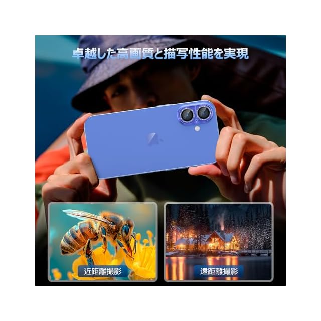 商品名:Podick カメラフィルム iPhone 16/16 Plus用 カメラカバー キラキラ 9H強化ガラス アルミ合金 アイフォン16/16Plus用 カメラ保護 ピカピカ キズ防止 耐衝撃 高透過率 黒縁取り 露出オーバー防止 極薄 レンズカバー プロテクター ブルー