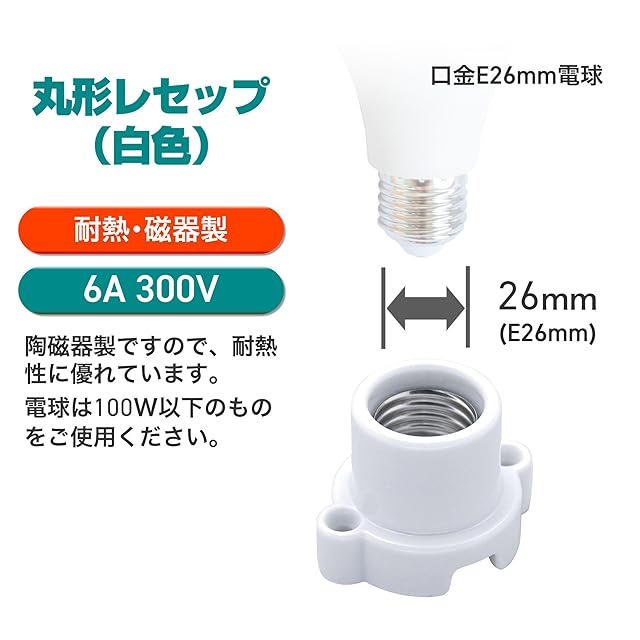 商品名:エルパ (ELPA) 丸型レセップ 電球 ソケット 照明 300V_6A E26 ホワイト SB-2617H(W)
