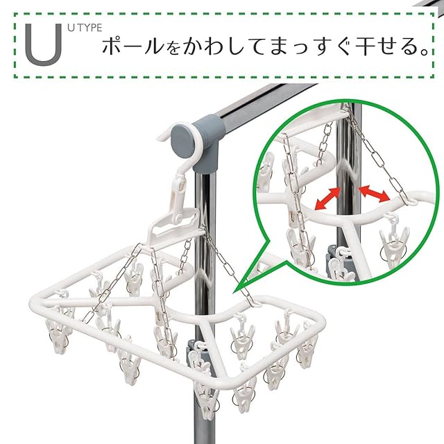 洗濯 物干し ハンガー HOS ルームハンガー U 洗濯ばさみ 16個付き ホワイト 約33.5×25×34cm 室内干しに便利