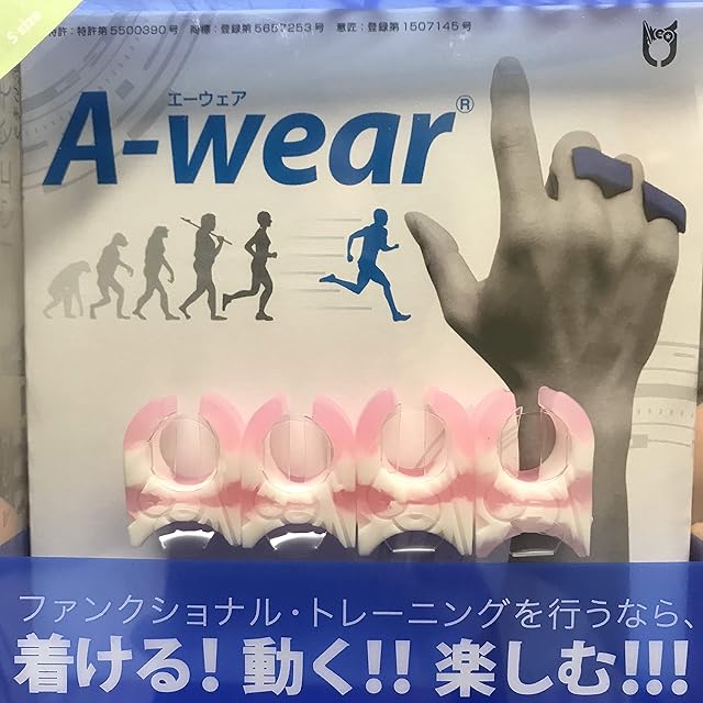 【A-wearは特許第5500390号に登録されています。】 ファンクショナルトレーニングを行う際に、装着することを目的としたツールです。 A-wearを装着すると、理想的なコンディションを維持してくれます。特にスポーツをしている方は、プレーをサポートしてくれます。 ※ 装着したままのプレーが難しい場合には、誰でも5分で出来るワークアウト「A-wear Work」をウォームアップに行った上で、A-wearを外してプレーしていただいても結構です。 また、装着しておくだけでコンディションを保つことが可能なため、パソコンに向かう時間の多いビジネスマン、体調が気になるお子さんや、お年寄りの方にも装着をお勧めしています。 こちらの商品は、他のエクササイズと比べるものでなく、全てのエクササイズをサポートするツールです。 特別な運動プログラムを行うことなく、理想的なコンディションを維持することができます。 日常の生活の至る場面(パソコンに向かうときなども)で。装着することにより。この達成が見込まれます。 また、装着状態で運動することも可能なので、スポーツ各種問わず、装着することをお勧めしています。実際に装着してから練習を行うと、どんなシュチュエーションでも実感できるとお声をいただいております。 A-wear Workとは? 身体をパーツで鍛えるのでなく、一つのまとまりとして捉えることで、自身の最大限のコンディションを引き出すことを目的とした、簡潔な、しかしながら包括的な身体メンテナンス・システムです。 手のひらで親指と人差し指のみ伸ばしたハンドポーズを取りながら、手首をひねる、腕を回す、鼠蹊部を叩く、といった簡単ないわゆる「体操」を行うことで、 「無意識的に良い状態で在り続けること」を達成し、日常生活でかかる身体への負担が、そのまま健康維持のための運動負荷となるようプログラミングされています。その最大の魅力は、人に頼ることなく、最小限の努力で自分の身体を良い状態へと調整し、その生涯を健康なまま過ごせることにあります。
