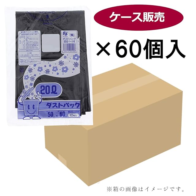 日泉ポリテック ゴミ袋 ゴミ箱用アクセサリ 黒 20L ダストパック 厚手0.025mm 日本製 (ケース販売) 10枚入 60個セット