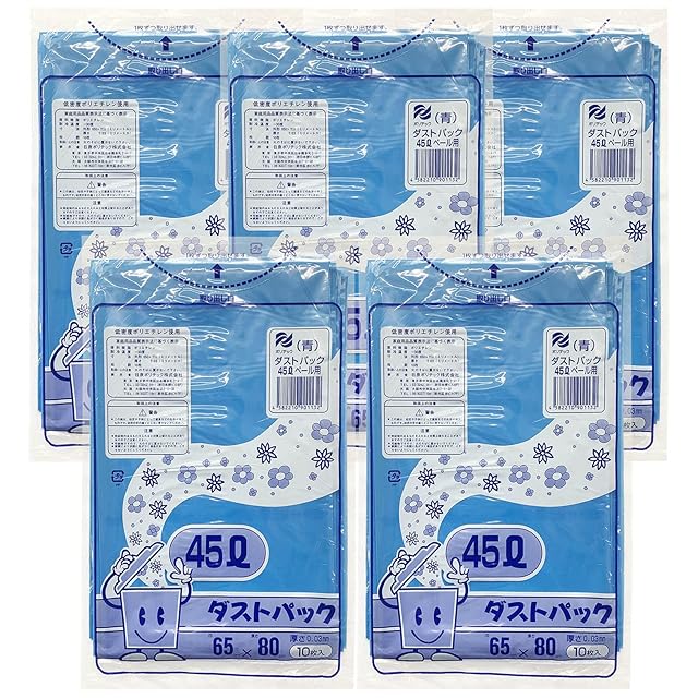 日泉ポリテック ゴミ袋 ダストパック 日本製 青 45L 10枚入×5個セット