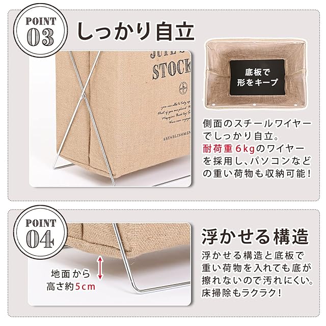 商品名:アストロ 折りたたみ収納ケース 麻 40L 内側撥水加工 大容量のマルチ収納 スチールワイヤーと底板で安定自立 床から浮かせることで汚れや傷つきを防止 ナチュラル ワイヤー付き かばん置き 荷物入れ 机下収納 洗濯かご カフェ ランドリー キャンプ アウトドア ゴミ箱 野菜ストッカー 約40×26×44.5cm 620-48