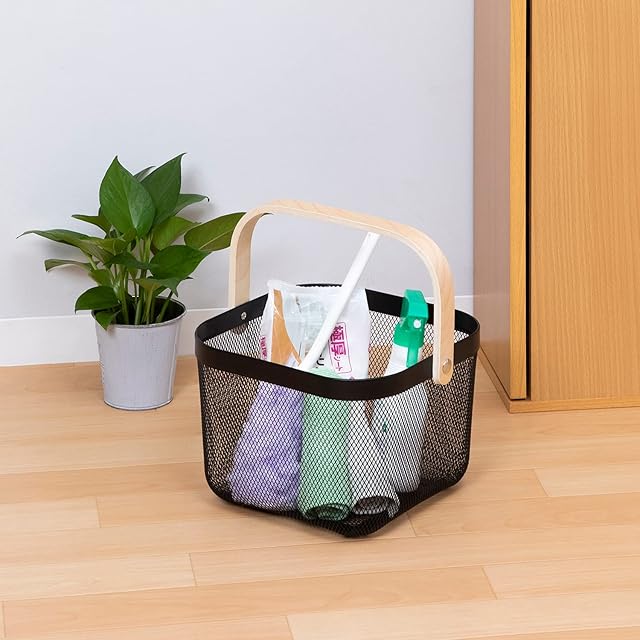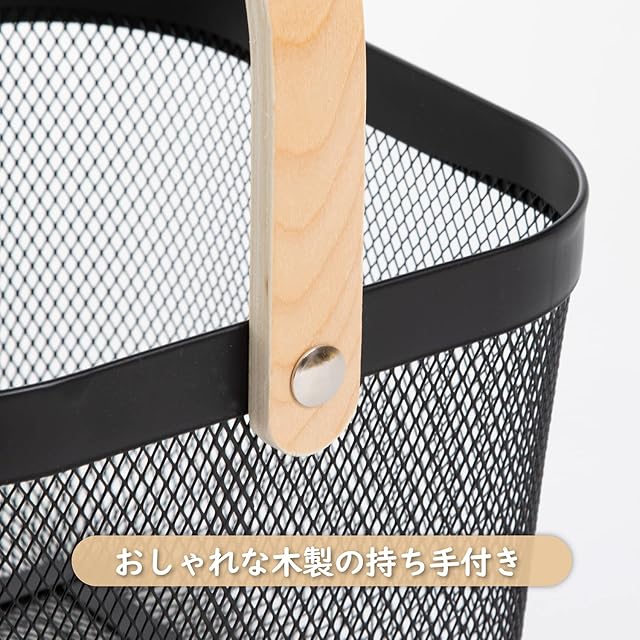 商品名:アストロ バスケット ブラック 訳あり メッシュバスケット スチール かご 収納バスケット 積み重ね可能 スタッキング 収納かご オシャレな木製の持ち手 小物入れ お菓子入れ 見せる収納 持ち運びしやすい 822-86