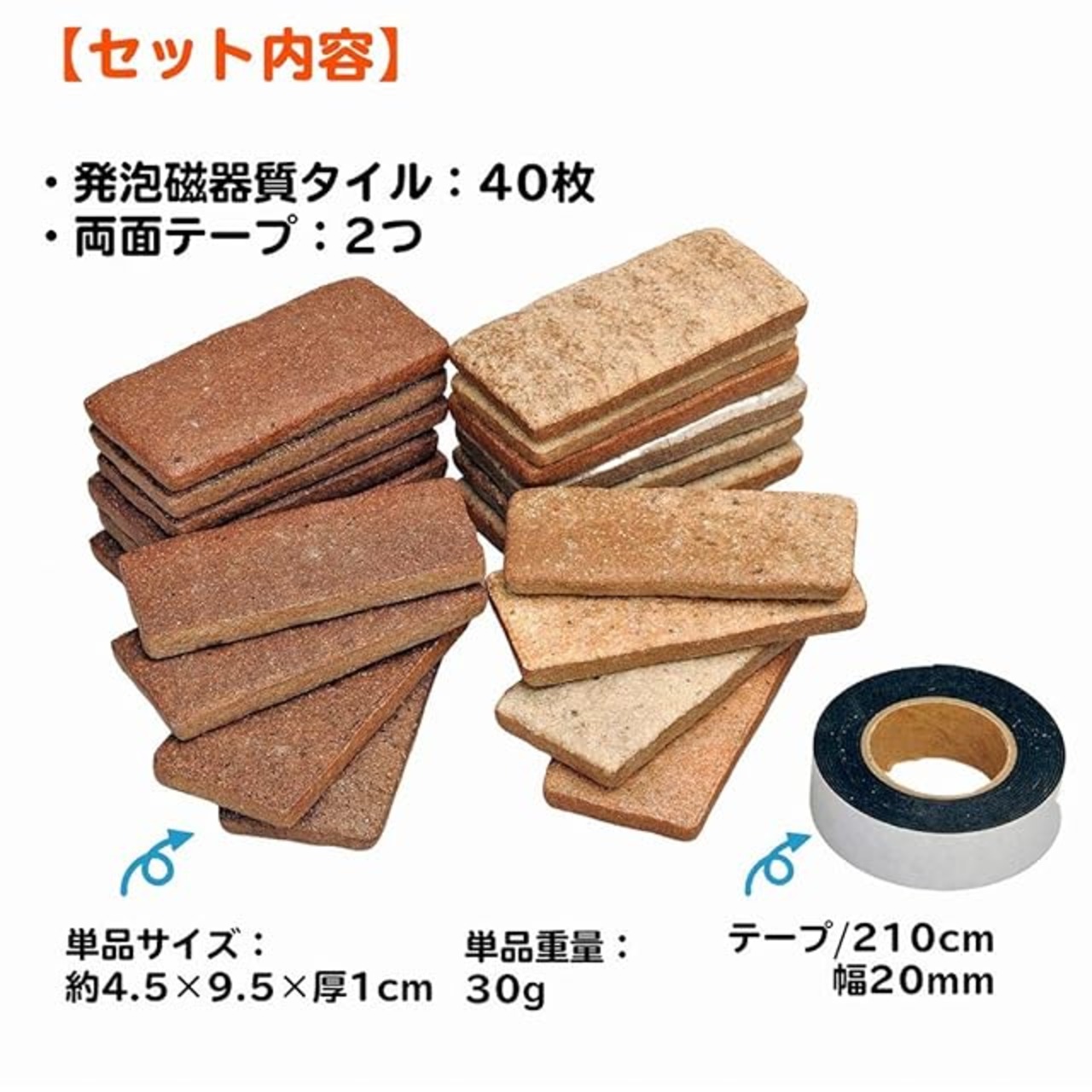 【材質】発泡磁器質タイル、両面テープ【単品サイズ】約4.5×9.5×厚1cm【単品重量】1650g