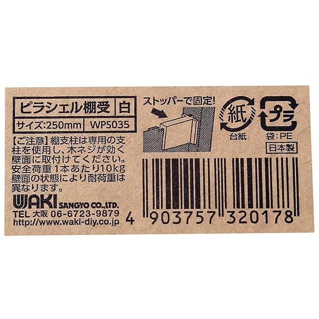 和気産業(Waki Sangyo) ピラシェル棚受 棚受け金具 白 250mm 1枚入 ピラシェルシリーズ 棚板 壁面 収納 WPS035
