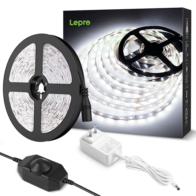Lepro LEDテープライト ストリップライト 昼光色 6000k 無段階調光 ledテープ 5m 薄型 切断可能 取付簡単 SMD2835 300LED高輝度 正面発光 間接照明 非防水 室内・店内装飾 ledライト