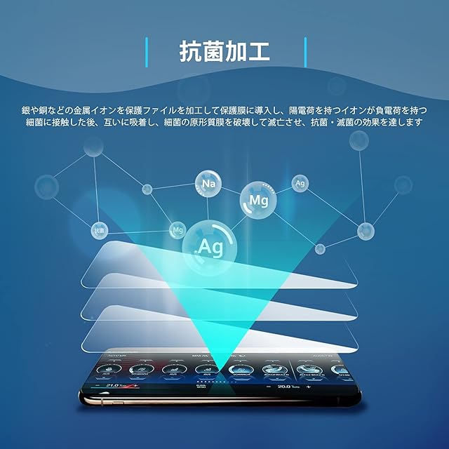 【指紋防止・抗菌】ロータス効果の原理を利用して、指紋防止、撥水、疎油などの加工を行い、スクリーンの美観を維持し、清潔にもなりやすいです。抗菌加工が新たに加わり、金属イオンの作用で表面の細菌の残存を減らし、健康を守ります。