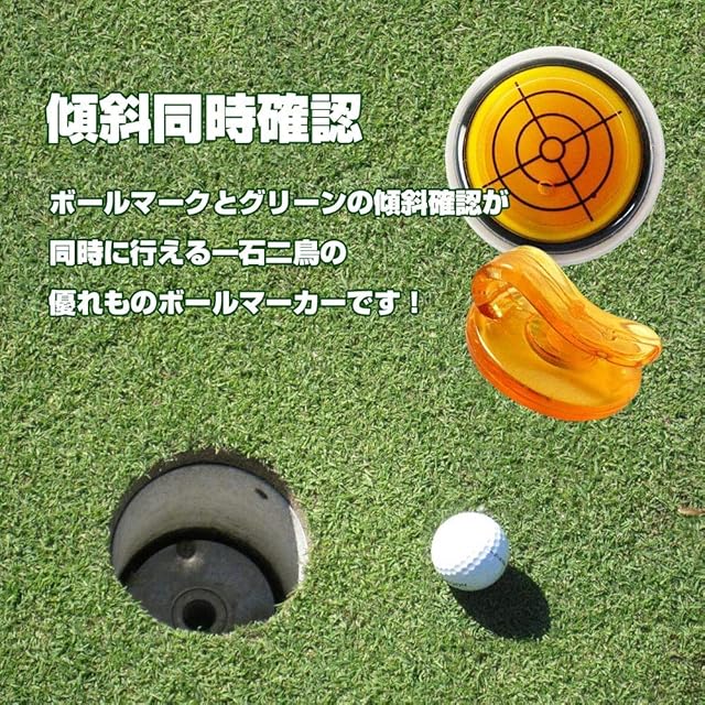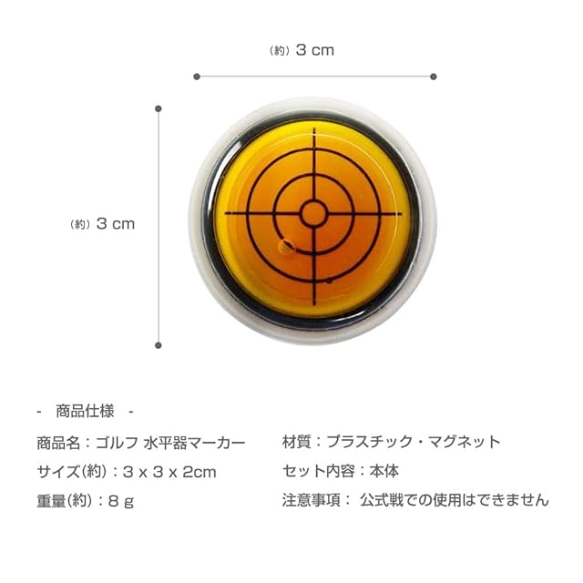 【通常の位置マークもしっかり】傾斜確認に加え、同伴者のラインに配慮して自分のボール位置を明確に示せる基本道具として使用可能、見やすいターゲットサークル柄で視認性が高く、ボールの向きを合わせる目印としても便利、ラウンド時はもちろんパターマットや屋内グリーンでの距離感練習、ストレートに打ち出すフェース向きチェック、ストローク矯正にも応用できる多機能設計