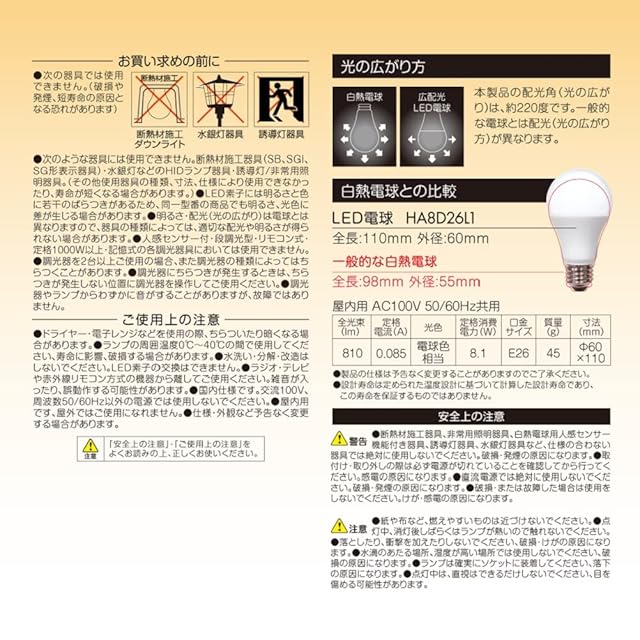 商品タイプ:60W(調光器対応) 2個