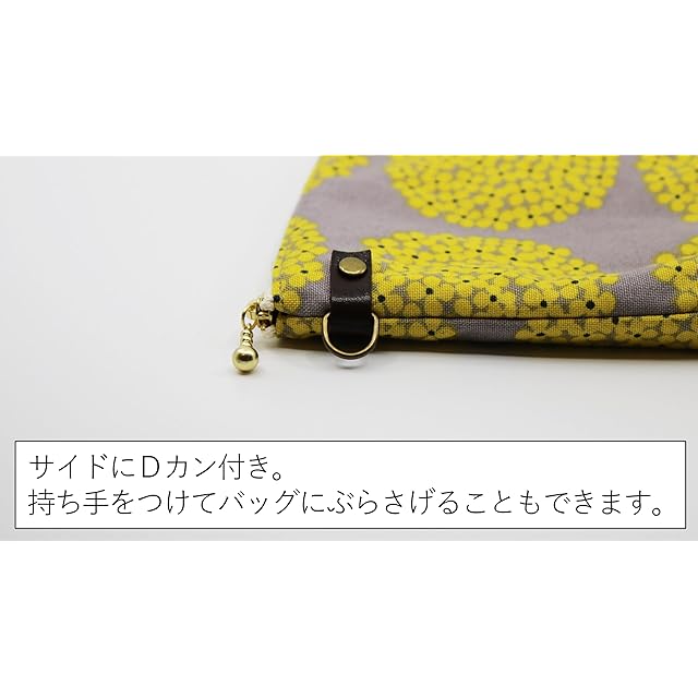 サイドに金具(Dカン)をお付けしていますのでそのままポーチとしても、持ち手を付けてバッグアクセサリーとしてもお使いいただけます。