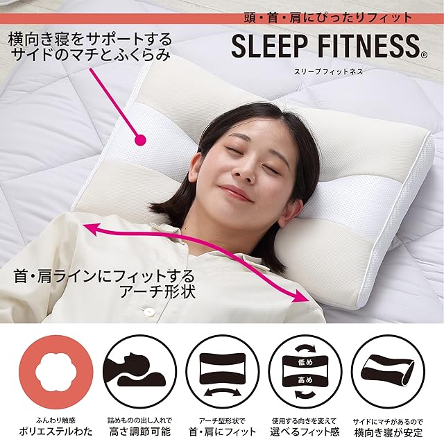 商品名:nishikawa【西川】 スリープフィットネス 枕 洗える ふんわり ポリエステルわた 頭・首・肩にぴったりフィット 高さ調整可能 仰向き寝 横向き寝 対応 48X38X6cm ベージュ EH93009490300