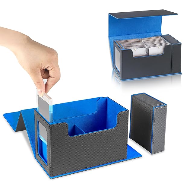HG CHASING TRIBE デッキケース トレカケース マグネットローダー 用 ケース PU レザー 23枚のマグネットローダーを格納できます カード450+枚収納 大容量 スリーブ対応 サイコロ付きケース トレーディングカードケース (黒、ブルー, 450+枚のカード組み合わせ収納)