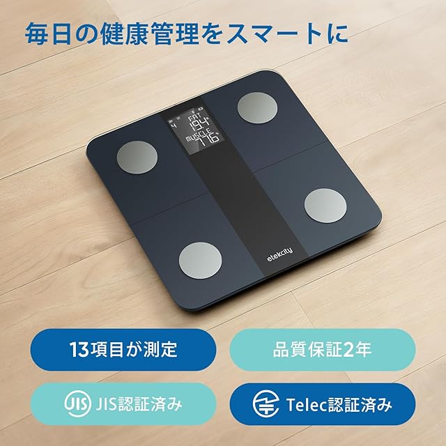 商品名:Etekcity 体重計 スマホ連動 2年品質 体脂肪計・体組成計 13項目測定 健康管理 食事管理 目標設定 乗るピタ 乗るだけで測定 日本語対応APP&取扱説明書 EFS-C651-KJP