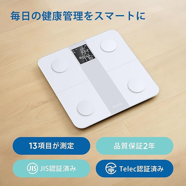 Etekcity 体重計 スマホ連動 2年品質 体脂肪計・体組成計 13項目測定 健康管理 食事管理 目標設定 乗るピタ 乗るだけで測定 日本語対応APP&取扱説明書 EFS-C651-WJP