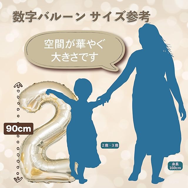 商品名:【風船屋】選べる数字 2歳 誕生日 大きな数字バルーン オシャレ バースデー 飾り付け セット ベビー 女の子 男の子 サプライズ プレゼント (2歳)