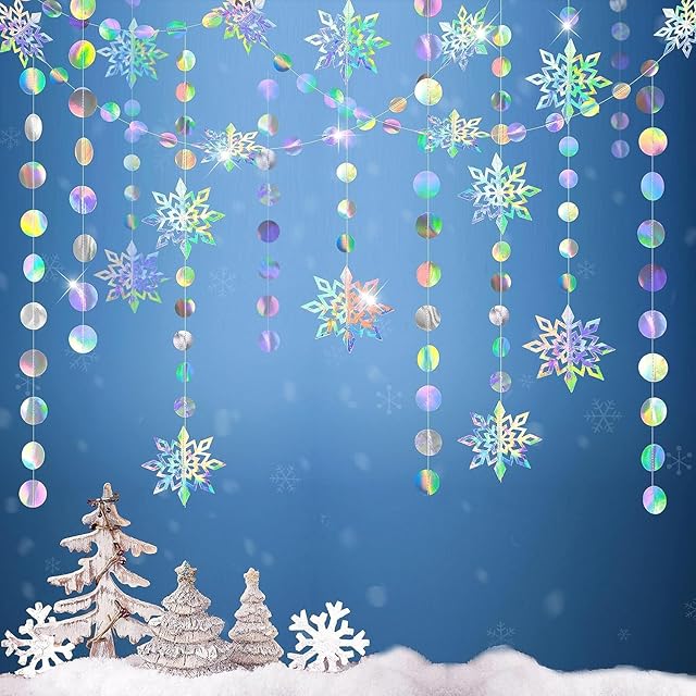 Hopeholic クリスマス ガーランド 雪の結晶 丸形 3本入 約12m長 スノーフレーク ペーパー オーナメント 吊り下げ クリスマス 飾り クリスマスパーティー 飾り付け 誕生日 結婚式 新年 ガーランド