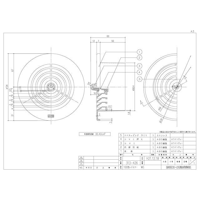 商品名:杉田エース(Sugita Ace) エース 換気口 100型 レジスター ホワイトグレー