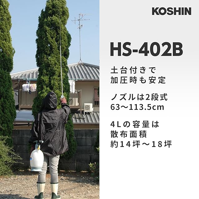 商品名:工進(KOSHIN) 蓄圧式 噴霧器 タンク 4L ミスターオート HS-402B 伸縮 2段 ノズル 噴口 1個 防除 消毒 散布