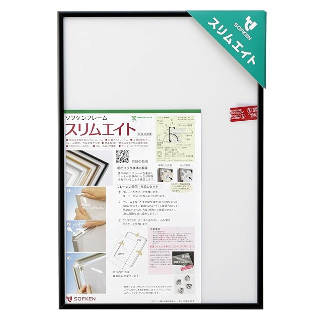 ソフケン アルミ額縁 スリムエイト ジグソーパズル300ピース260X380 ブラック 【ジグソーパズル額 軽量で作品セットが簡単なジグソーパズルフレーム】