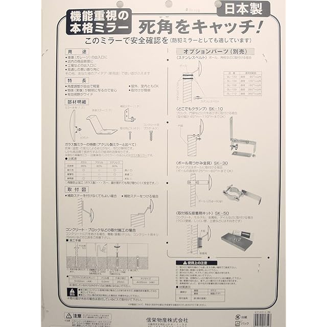 用途:車庫(ガレージ)の出入口に、店内の商品管理に、工場などの出入口に、見通しの悪い曲り角に、その他、あなたのアイデア(新用途)で使い道がふえます