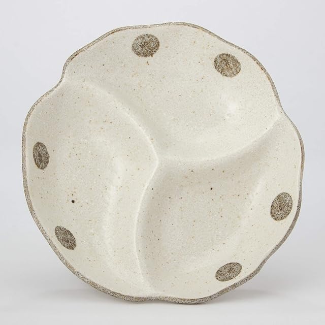 かじゅあるらいふ 美濃焼 仕切り皿 オードブル皿 仕切りプレート 皿 直径約18cm 水玉白唐津 電子レンジ 食洗機対応 和食器 日本製 K80037