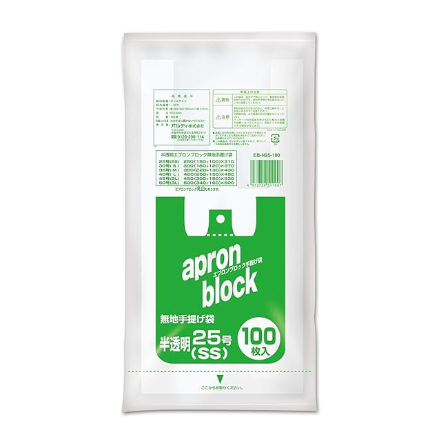 [オルディ] レジ袋 25号 SS 半透明 100枚入 コンビニ袋 テイクアウト 取っ手付き ポリ袋 手提げ袋 エプロンブロック EB-N25-100