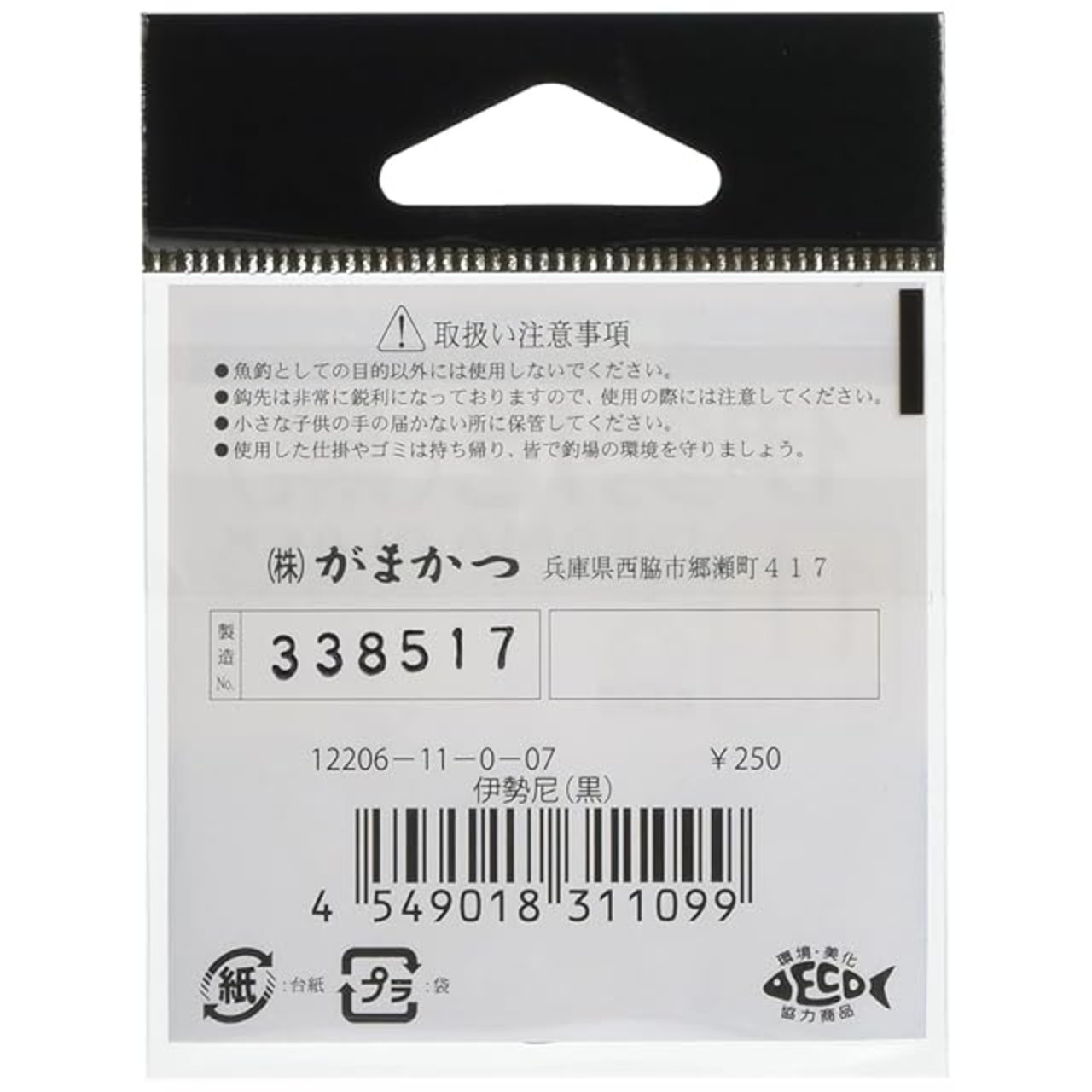 商品名:がまかつ(Gamakatsu) バラ針 伊勢尼 黒 11号