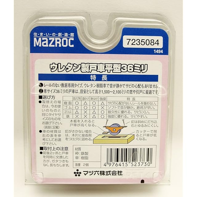 マツ六 ウレタン製戸車 平型 36ミリ 7235084