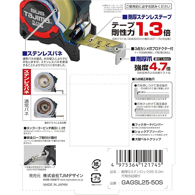 商品名:タジマ(Tajima) コンベックス 剛厚ステンレステープ5m×25mm 剛厚Gステンロック25 尺相当目盛付 GAGSL25-50S