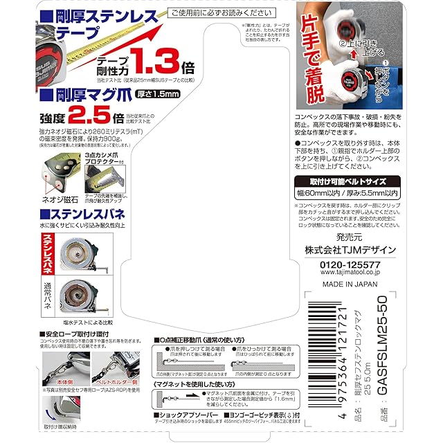 商品名:タジマ(Tajima) コンベックス 剛厚ステンレステープ5m×25mm 剛厚セフステンロックマグ25 GASFSLM25-50