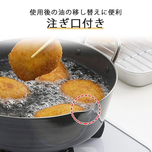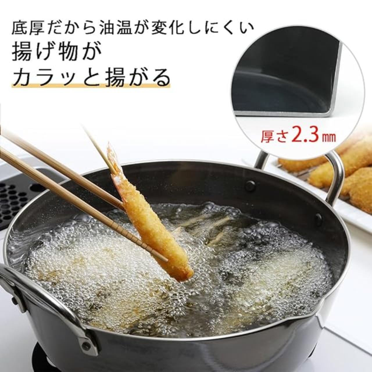 商品名:下村企販 天ぷら鍋 厚底 24cm 【日本製】 鉄 ガス火 IH対応 保温力 底厚2.3mm 油の温度が下がりにくい ワイド 揚げ物 揚げ物 燕三条 44726