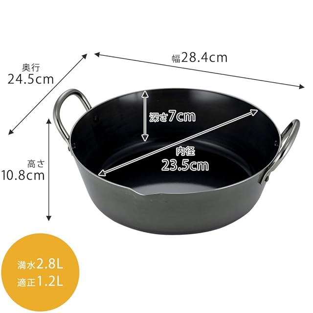 下村企販 天ぷら鍋 厚底 24cm 【日本製】 鉄 ガス火 IH対応 保温力 底厚2.3mm 油の温度が下がりにくい ワイド 揚げ物 揚げ物 燕三条 44726