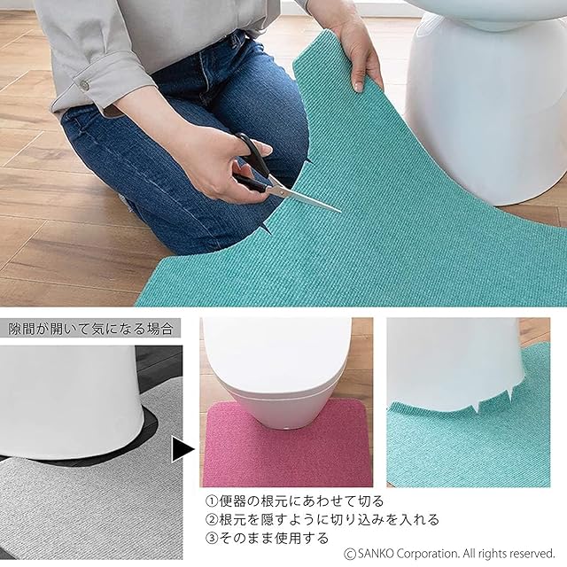 置くだけで、ずれない吸着タイプのトイレマットです。薄手タイプで、段差を感じない薄手タイプですので、マットにつまずいたり、引っかかったりしません。