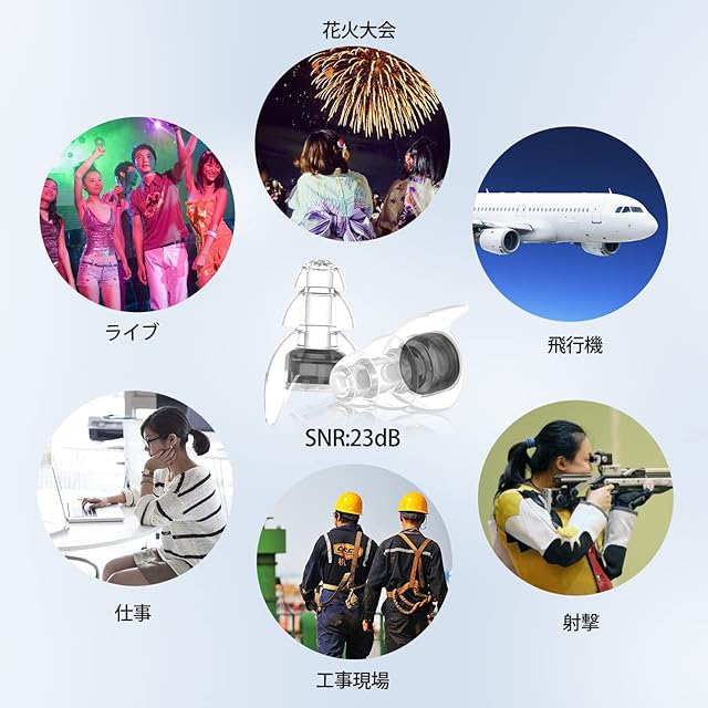 【幅広い適用場所】ライブコンサート、パーティー、クラブ、スポーツイベント、花火大会、射撃、工事現場、バイクに乗る時、バー、睡眠、飛行機、電車、勉強、仕事、通勤、通学、旅行、うるさい環境での不快感がある時などにご使用ください。