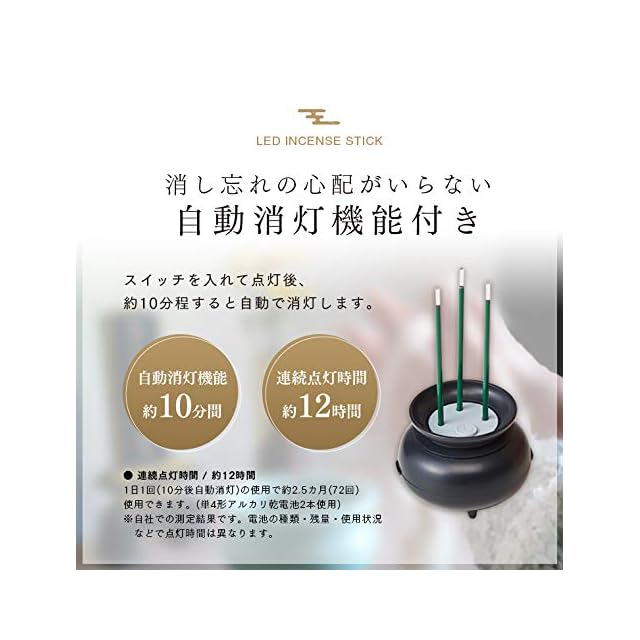 アイメディア(Aimedia) 火を使わない LED線香 自動消灯 6.2×6×10.8cm 1008791
